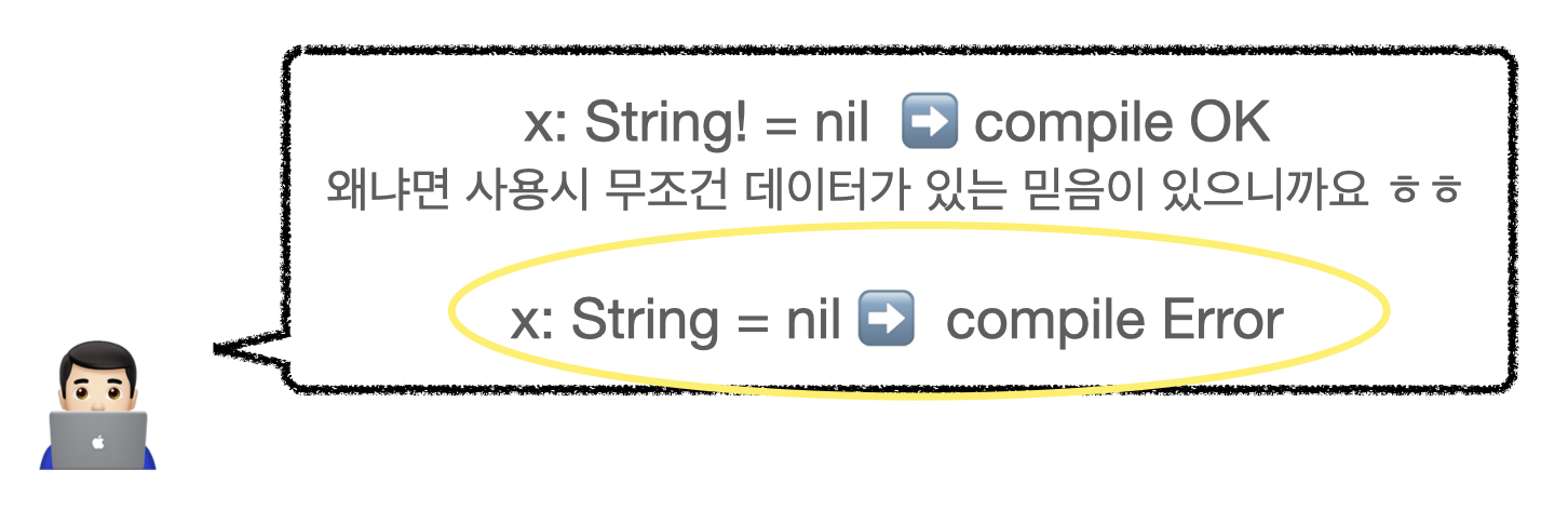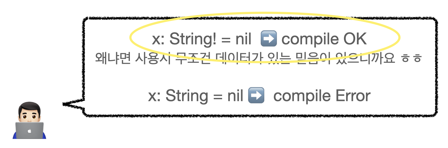 var x: String! = nil 이 왜 컴파일 OK인지 이해가 가시나요?