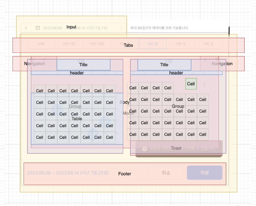 인풋 박스의 변경, 모달 내 헤더에 탭 추가, 달력 타이틀 및 하단 헤더의 변화와 같은 요소들이 추가되었고, 이는 단순한 HTML 추가를 넘어서 다른 엘리먼트와의 복잡한 상호작용을 요구했습니다.