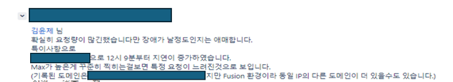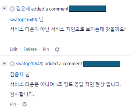 - 위에서 응답 그래프로 네트워크 지연으로 보였을 때 유력 후보로 떠올랐습니다.
