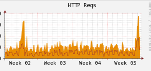 이후로도 날짜는 정확하지 않으나, 4시간마다 트래픽이 상승하는 패턴이 나타났고, 간헐
