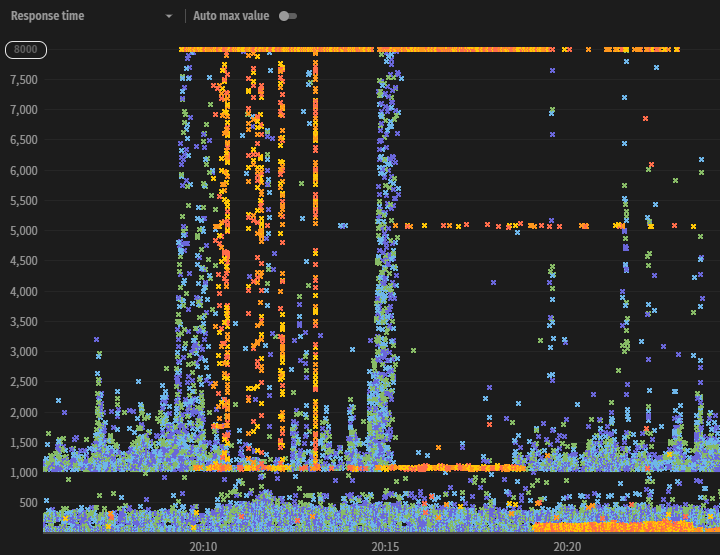 (어떤 분께서는 위 응답 시간 그래프를 보고 '불기둥'이라고 칭하기도 하였습니다.)