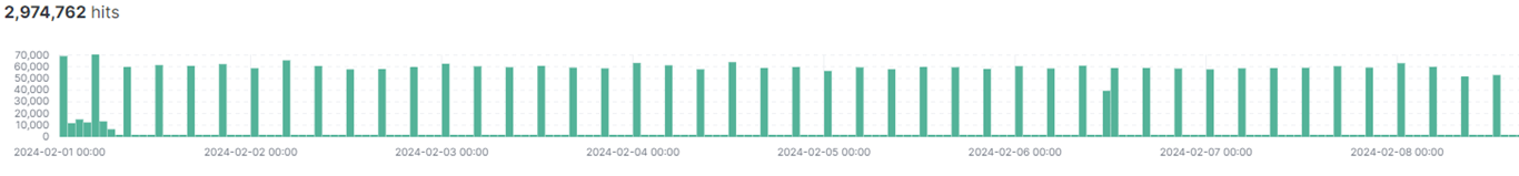 Activity log를 통해 확인한 특정 UserAgent의 유입량 (4시간 패턴)