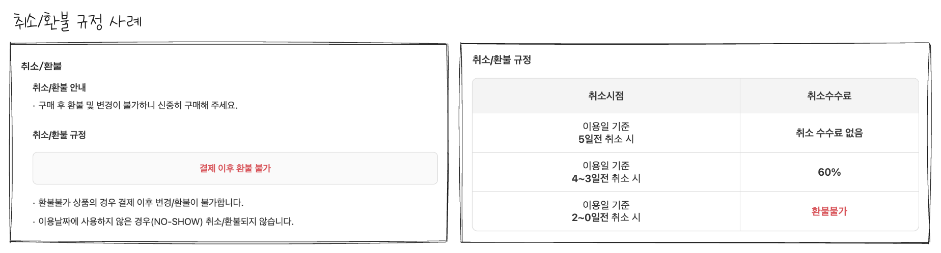 - 실시간 예약이 완료되는 시점부터 취소 위약금이 부과될 수 있다.