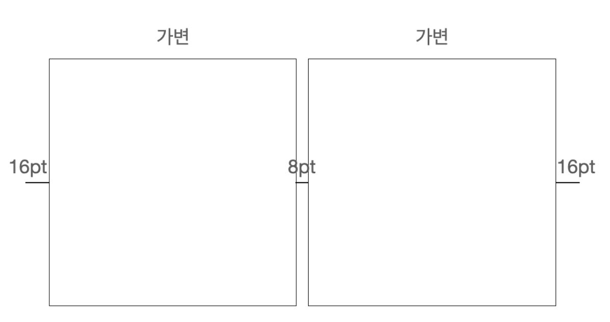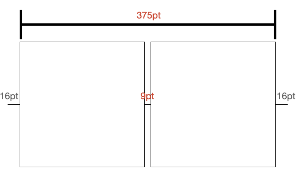 - ex. 디바이스 width = 375, 마진 전체 width = 16+8+16 = 40 & 아이템 카드 width = (375-40)/2 = 167.5