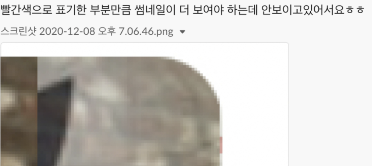 잘려서 각져보이는 부분이 보이시나요? 그런데 또 문제는 "제거에선 원래대로 잘 보이는데요? 🤔"라는 거죠.