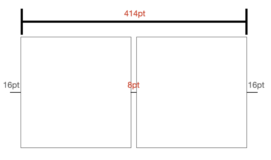 - ex. 디바이스 width = 414, 마진 전체 width = 16+9+16 = 41