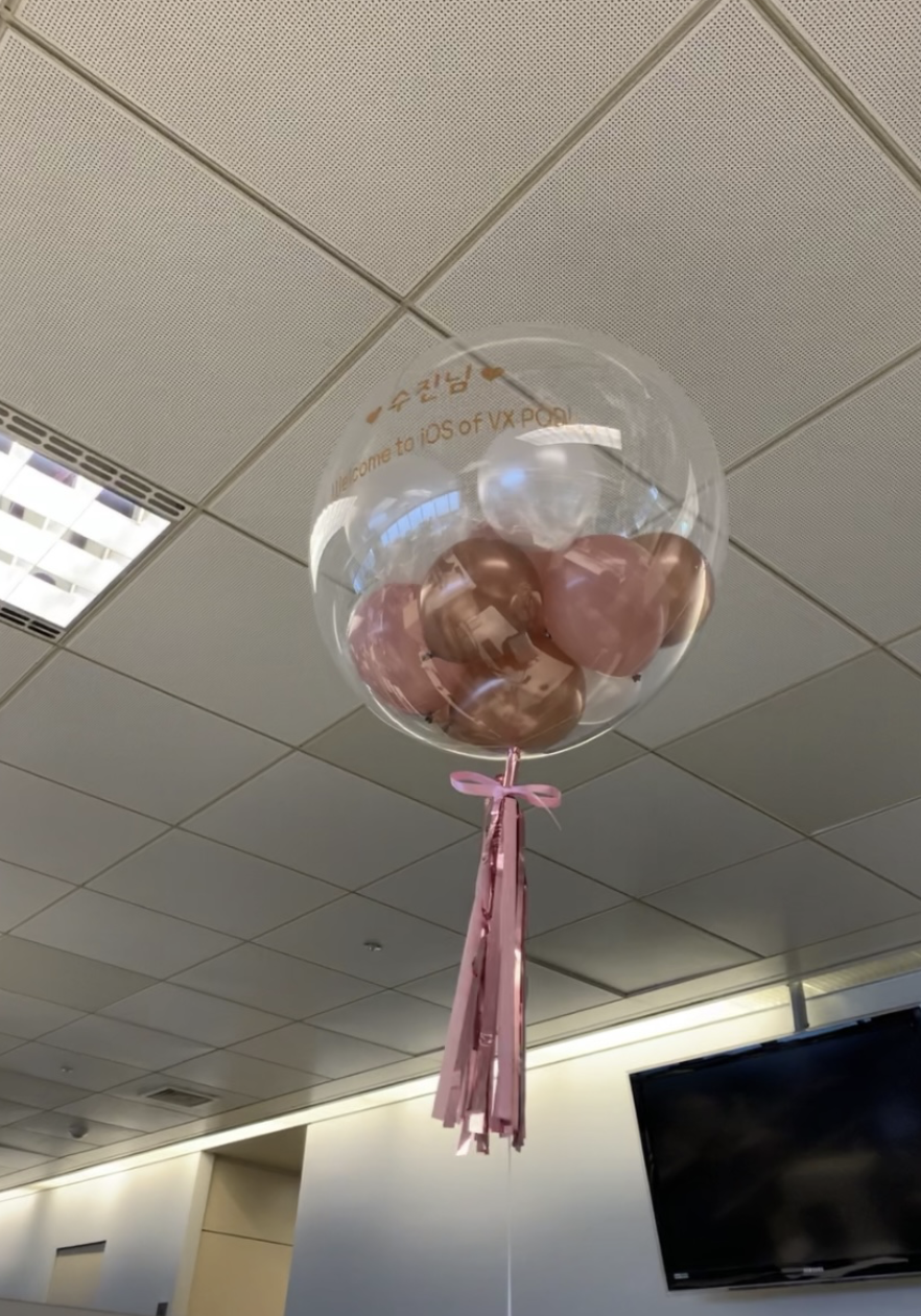저는 6월 말에 이베이 코리아에 iOS 개발자로 합류했습니다. 처음 자리에 놓여있던 풍선이 가장 기억에 남네요 ㅎㅎ (이제 풍선에 붙어있던 스티커는 제 노트북으로 옮겨왔습니다)