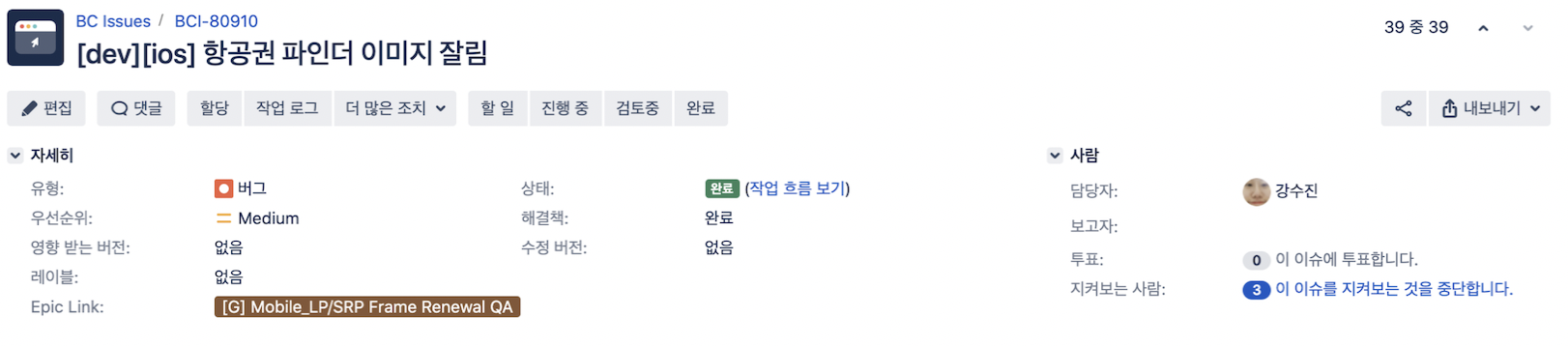 - PM분이나 디자이너분이 확인 후 Done으로 상태 변경