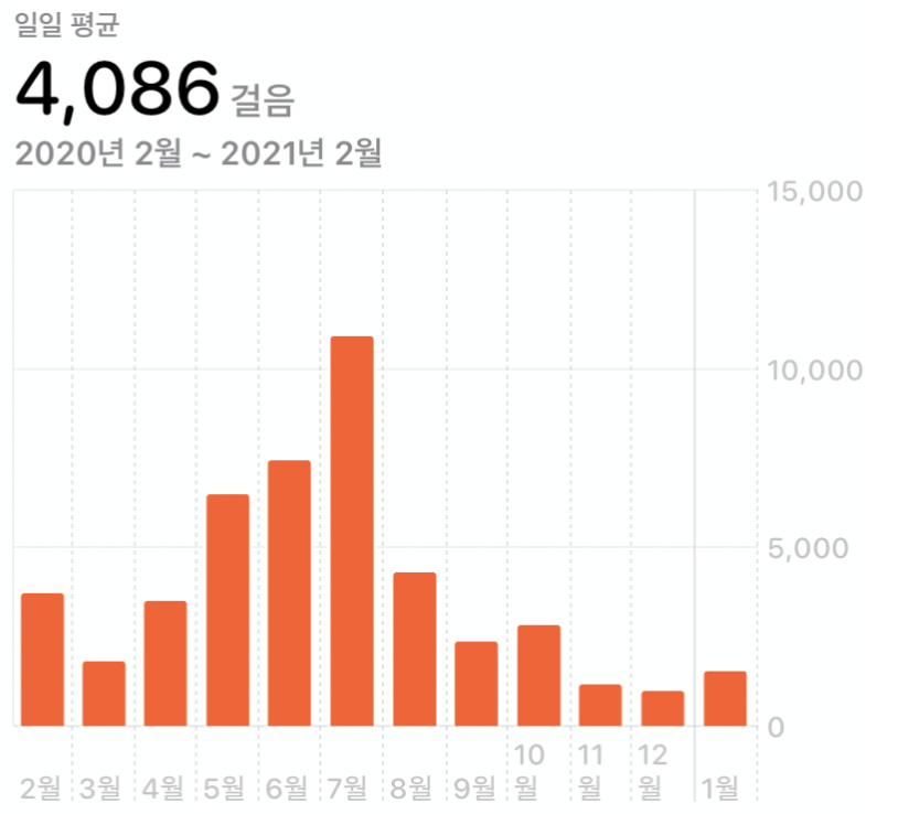 그리고 8월은 대망의 100% 재택이 재개된 달이기도 합니다. 재택 이후 급격히 줄어든 걸음 수를 보세요..