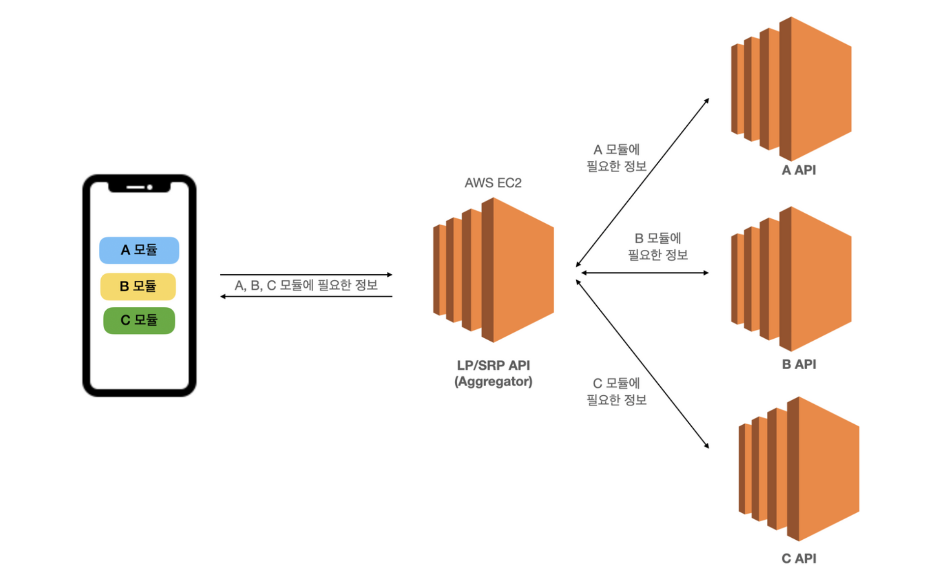 저와 같이 일하는 백엔드 개발자분들이 작업하는 API가 aggregator의 역할을 하고 있다는 사실도 알았습니다. 원래 저는 DB 연결부터 시작해서 뷰에 필요한 정보를 내려주는 작업을 A부터 Z까지 다 개발해주시면 그걸 연동해서 쓰는 건 줄 알았죠..! 즉, 지금까지 조그마한 프로젝트만 진행해본 경험상 데이터는 하나의 API만 거쳐서 오는 것으로 생각했습니다. (사실 관련해서 입사 초기에 잠깐 설명들은 적도 있는데, 음.. aggregator.. 모아주는 거.. 하고 완전한 이해는 못한 상태였거든요 ㅎ)