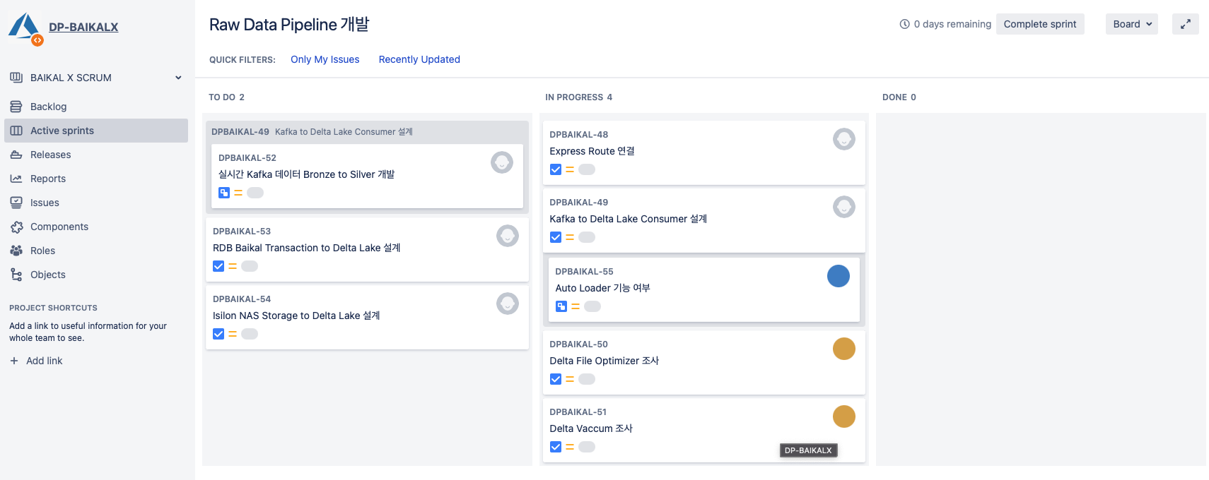 위 글에서 팀 운영 환경과 Databricks 도입이 필요한 이유에 대해 설명드렸습니다. Databricks 관련된 상세 내용은 저의 다음 글에서 작성하도록 하고, 본 글에서는 Databricks에 대한 주된 내용보다는 신규 프로젝트를 효과적으로 관리하기 위해 애자일 도구인 JIRA를 사용한 경험에 대해 소개하고자 합니다.