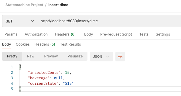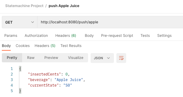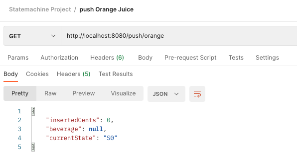 이제 우리의 유한 상태 자판기가 완성되었습니다! 자판기를 web 서버로 올리고, Postman을 이용하여 테스트해보겠습니다.