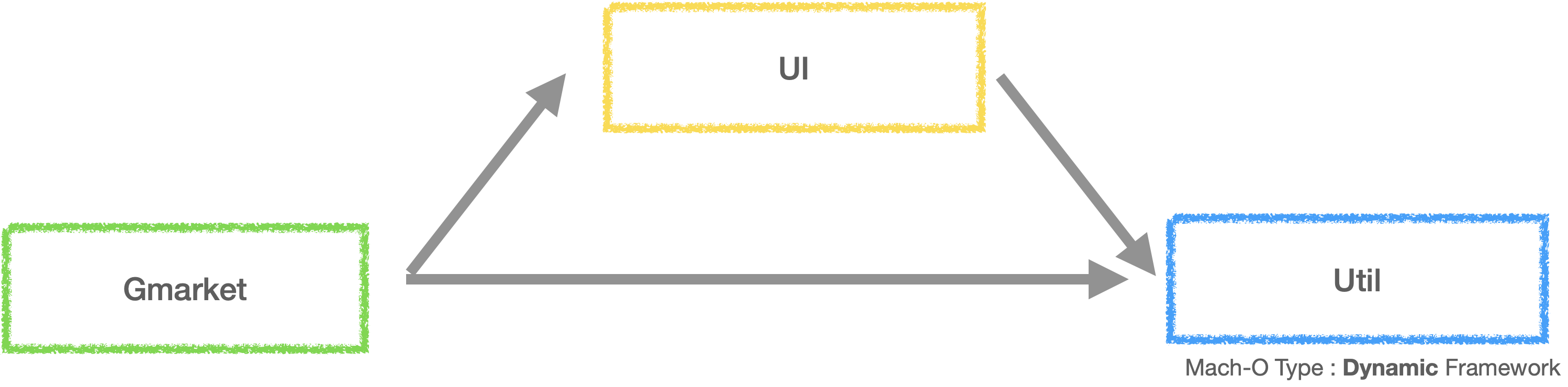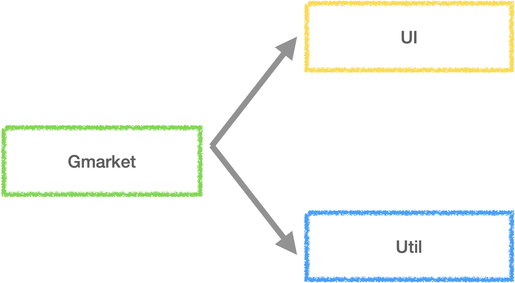 Gmarket 에서 사용하고 있는 framework 는 다양하지만, 문제에 집중하기 위해 UI 와 Util 이라는 두 가지 framework 를 사용한다고 상황을 간략화해보겠습니다.