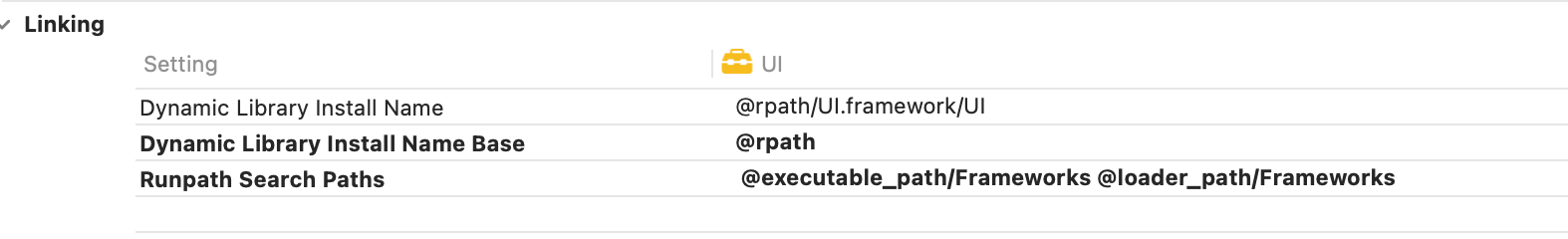 UI 프레임워크에서는 rpath 가 @exeutable_path/Frameworks 와 @loader_path/Framworks로 설정이 되어있습니다.