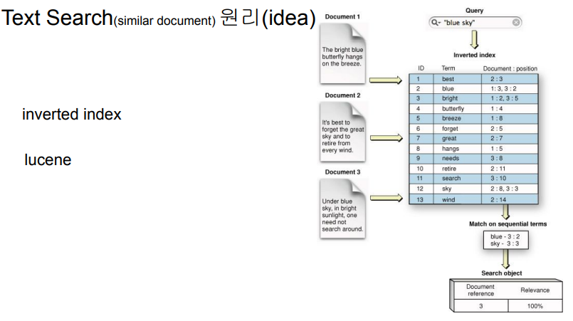 Text Search는 문서 안에 사용된 단어와 그 빈도수를 이용하여 유사 문서 검색을 하고 있습니다.