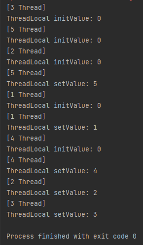 System.out.println("[" + number + " Thread]\nThreadLocal initValue: " + initValue + " setValue:" + setValue );