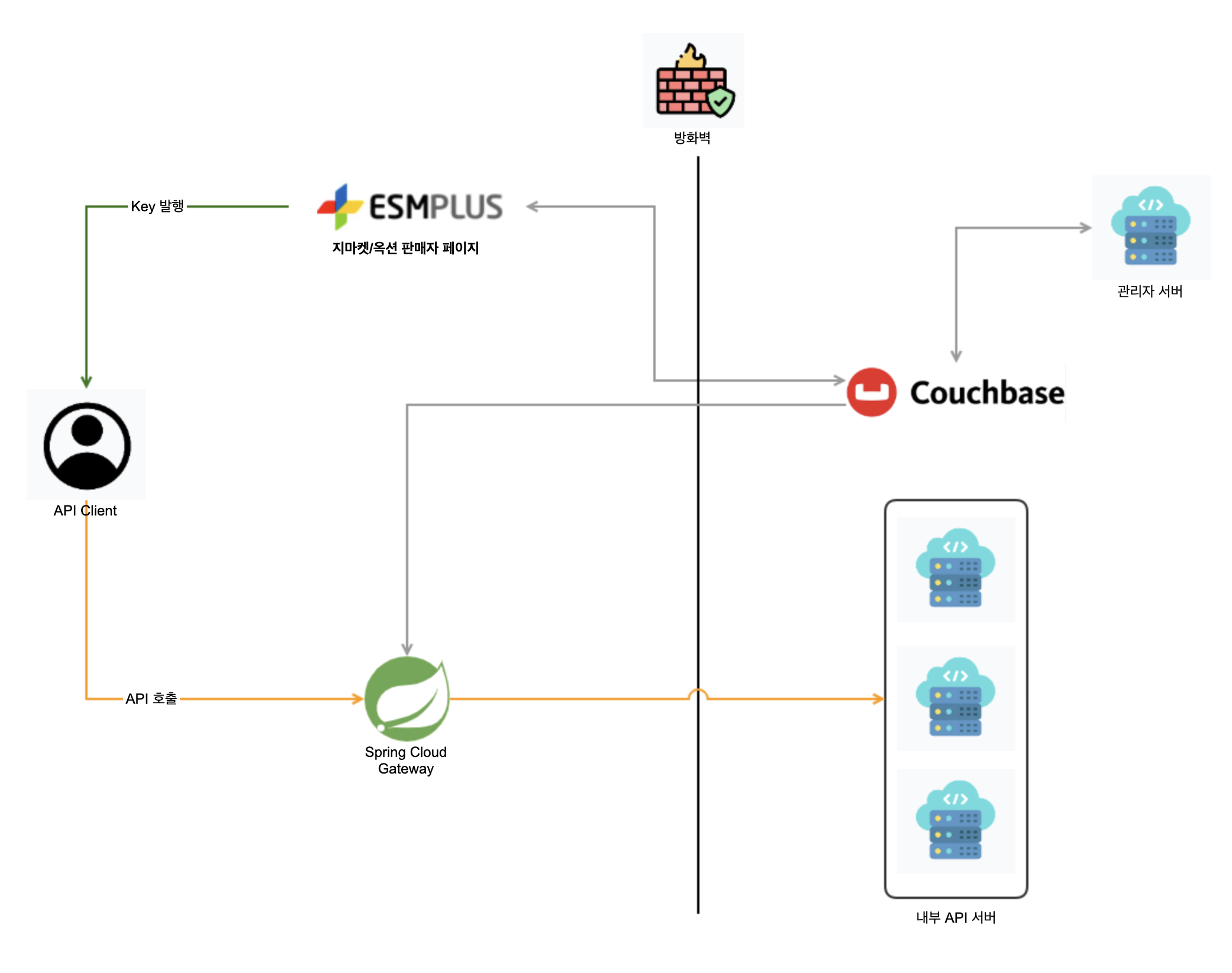 간략하게 서비스를 소개하면 저희 팀에서는 Couchbase를 통해, 외부에 제공하는 사내 API의 Gateway 인증 서비스를 관리하고 개발하고 있습니다. 이 서비스를 통해 인증된 외부에서 개발자들의 지마켓이나 옥션 등의 상품, 주문, 배송, 클레임, 정산 등의 API를 사용할 수 있게 됩니다. 즉, API 사용자가 인가된 사용자인지를 확인해 주는 인증 서버입니다.