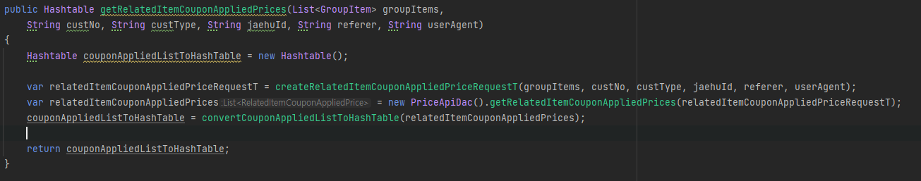 가장 큰 Diry Code는 연관 상품 목록을 API로부터 받아 온 후 Converting 작업에서 아래와 같은 문제가 있었습니다.