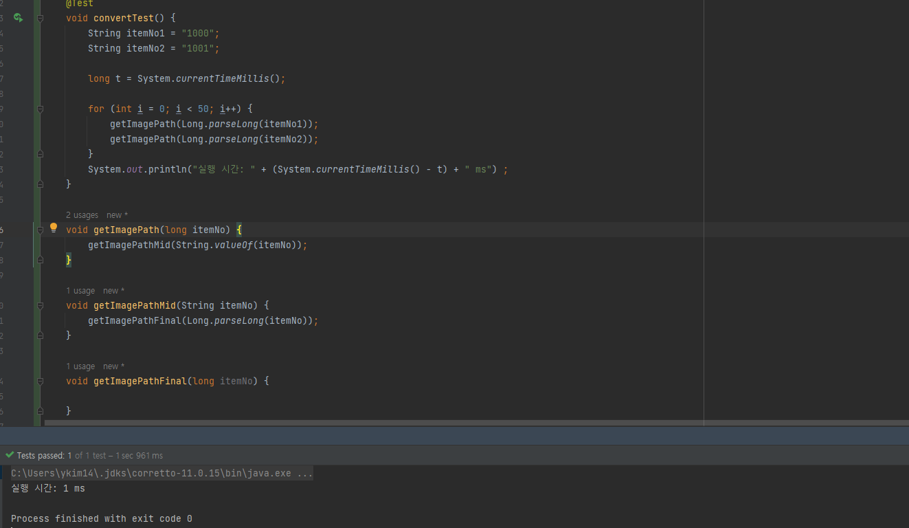 아래와 같이 메소드를 호출하며 다중 형변환이 되는 작업이 있었습니다. 성능에 많은 영향을 끼칠 정도는 아니지만,