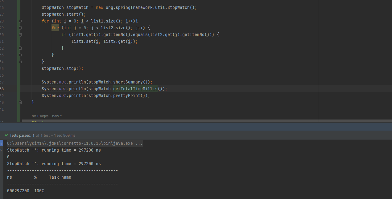 - 수행 시간이 오래 걸리는 메소드의 라인마다 수행시간을 체크한다.